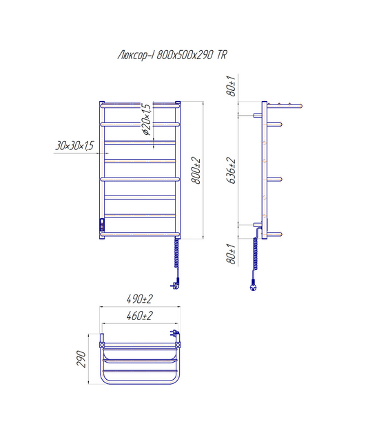 Электрический полотенцесушитель Mario Люксор-I TR 800х500/290 правое подключение 4820111355839