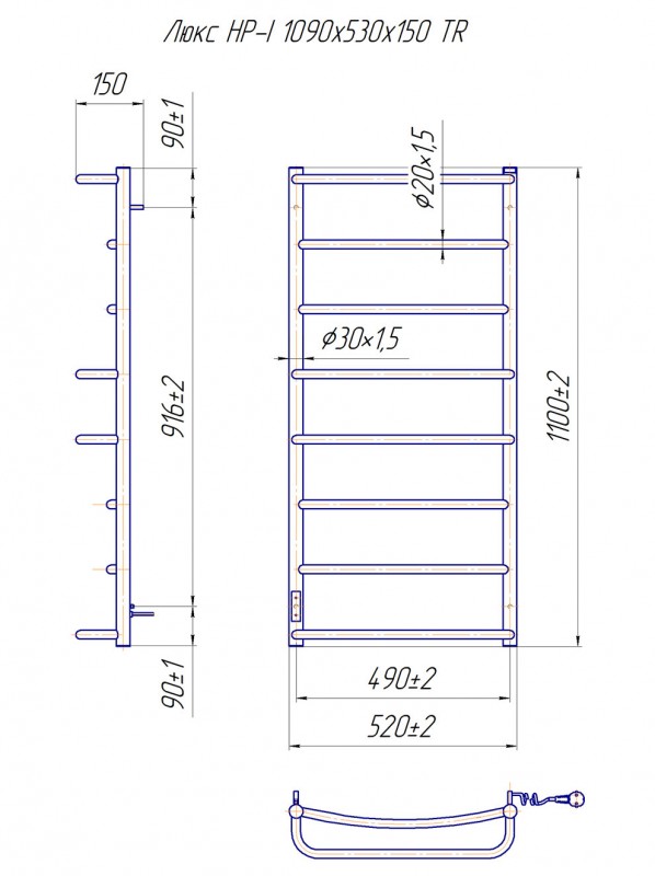 Электрический полотенцесушитель Mario Люкс HP-I TR 1090x530/150 правое подключение 4820111355464