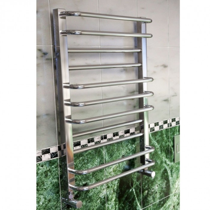 Полотенцесушитель Премиум Люкс-I изготовлен в виде традиционной лесенки, однако его функциональные возможности расширены благодаря выступающим ребрам. Конструкция насчитывает 11 ребер, сгруппированных в пять секций. Данная модель обладает большой мощностью в сочетании с энергетической эффективностью. Она быстро нагревается и медленно остывает после отключения от сети. Такой полотенцесушитель станет украшением вашей ванной комнаты и позволит высушить большое количество белья.
