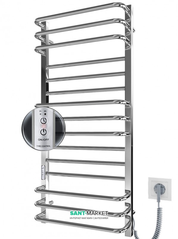 Главной особенностью данного полотенцесушителя является наличие таймера который позволяет запрограммировать его выключение через 2 или 4 часа на выбор.