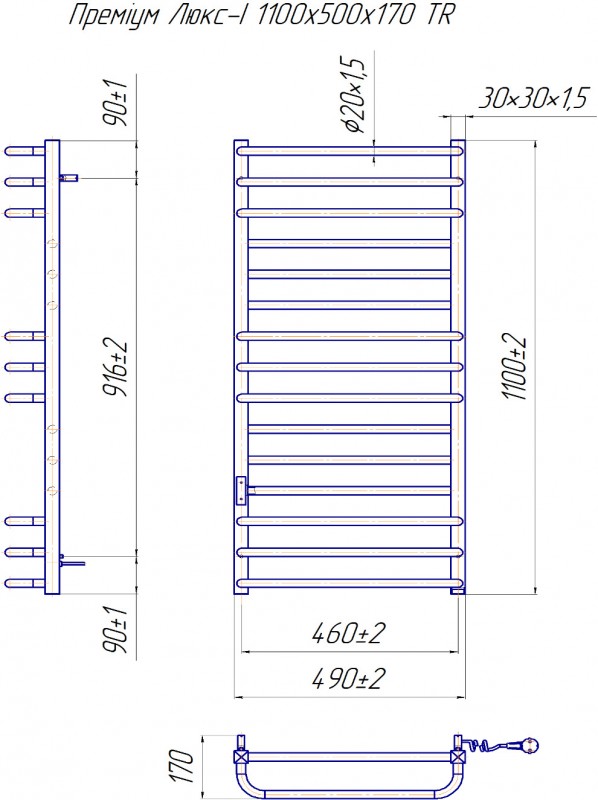 Электрический полотенцесушитель Mario Премиум Люкс-I TR 1100x500/170 правое подключение