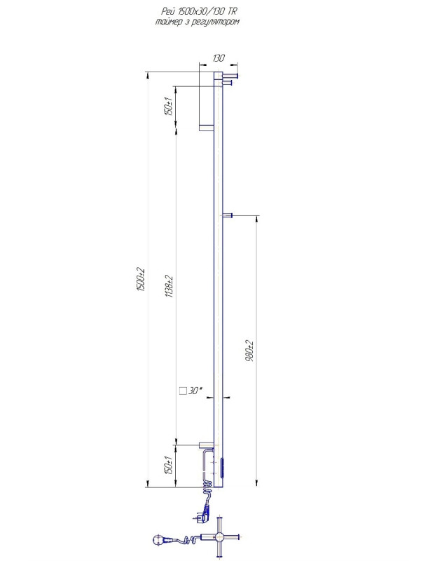 Электрический полотенцесушитель Mario Рей Кубо-І 1500x30/130 TR черный мат