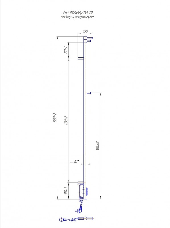 Электрический полотенцесушитель Mario Рей-І TR 1500х30/130 c таймер-регулятором