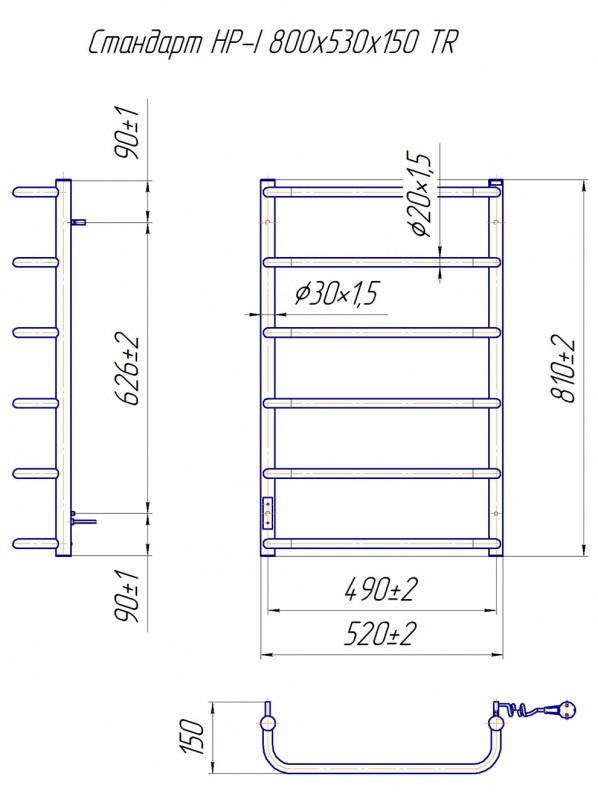 Электрический полотенцесушитель Mario Стандарт HP-I TR 800x530/150 правое подключение