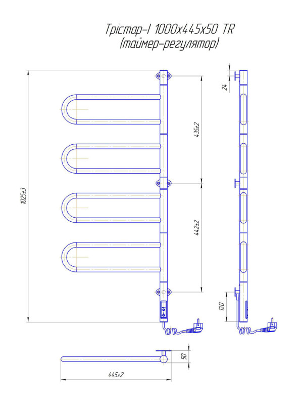 Электрический полотенцесушитель Mario Тристар-I 1000х445 TR таймер-регулятор черный мат