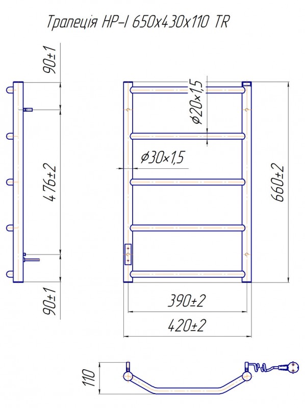 Электрический полотенцесушитель Mario Трапеция HP-I TR 650x430/110 правое подключение