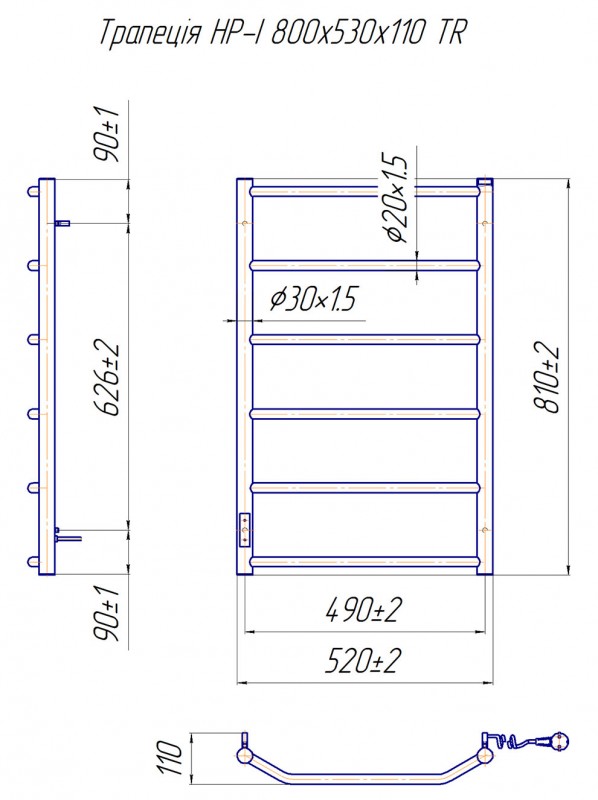 Электрический полотенцесушитель Mario Трапеция HP-I TR 800x530/110 правое подключение