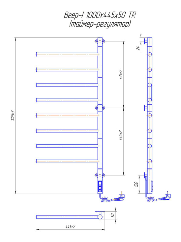 Электрический полотенцесушитель Mario Веер-I 1000х445/55 TR черный мат 4820258980567