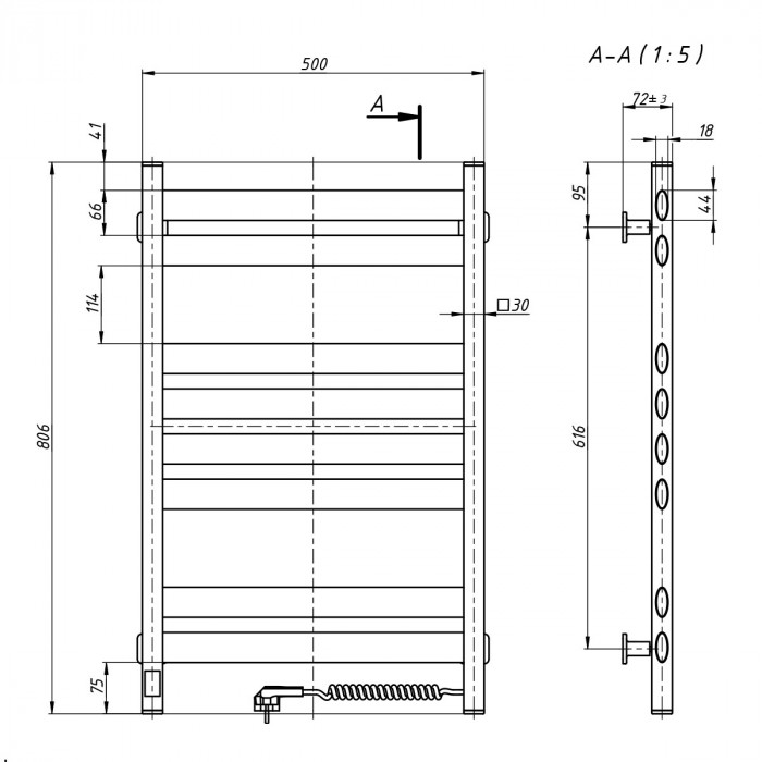 Электрический полотенцесушитель NAVIN Ellipse — яркий образец минимализма. Дизайн представляет простую, строгую и бесконечно привлекательную геометрическую гармонию. Изготовлен из нержавеющей стали, которая устойчива к царапинам и механическим повреждениям, а также обладает высокой антикоррозийной устойчивостью. Модель имеет боковые коллекторы (стойки), выполненные из профильной квадратной трубы 30х30 мм, а перемычки — из прямоугольных трубок 30х10 мм. Полотенцесушитель имеет зеркальную полированную поверхность, полученную путем высокоточной электроплазменной полировки.