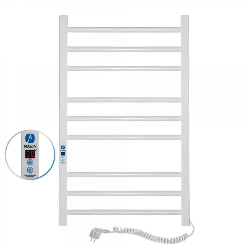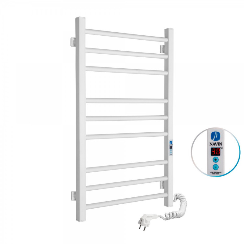 1) Электрический полотенцесушитель Navin Классик Квадро 500х800 Digital правый окрашенная сталь белый