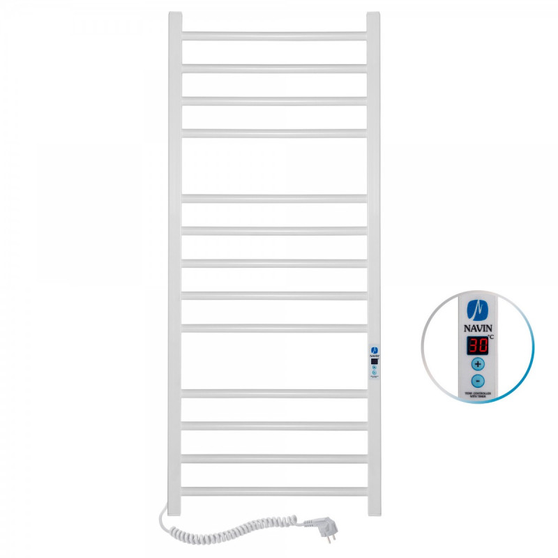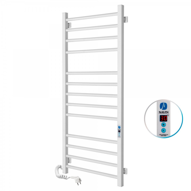 1) Электрический полотенцесушитель Navin Классик Квадро 500х1200 Digital левый окрашенная сталь белый