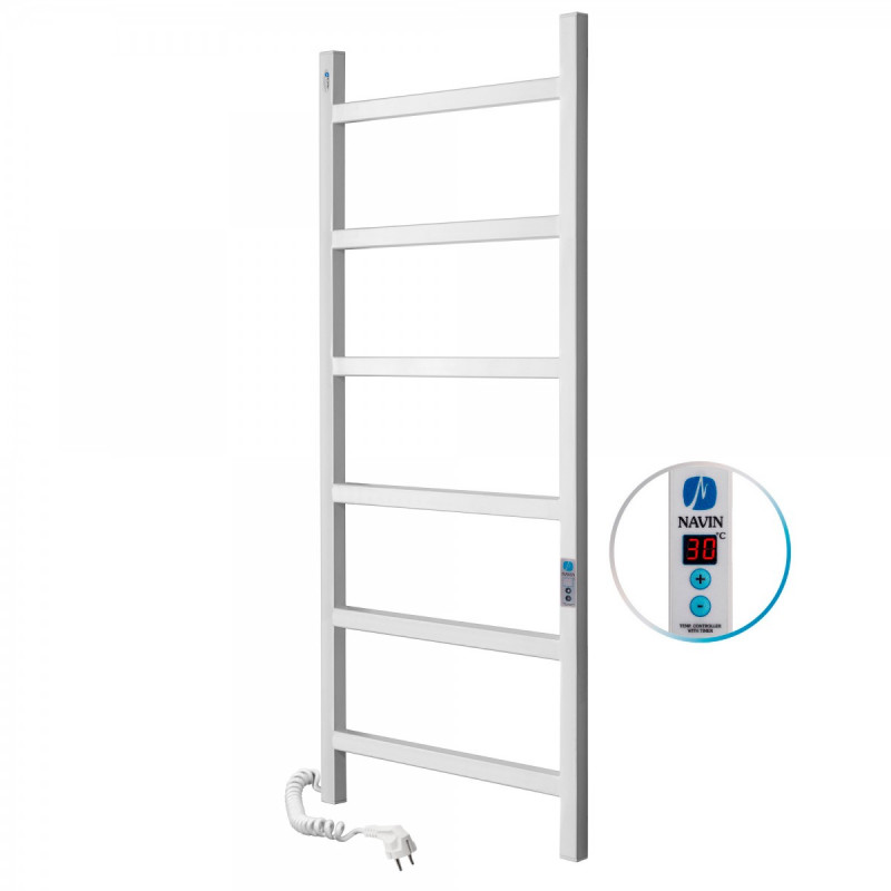1) Электрический полотенцесушитель Navin Nordic 500х1200 Digital правый окрашенная сталь белый бархат