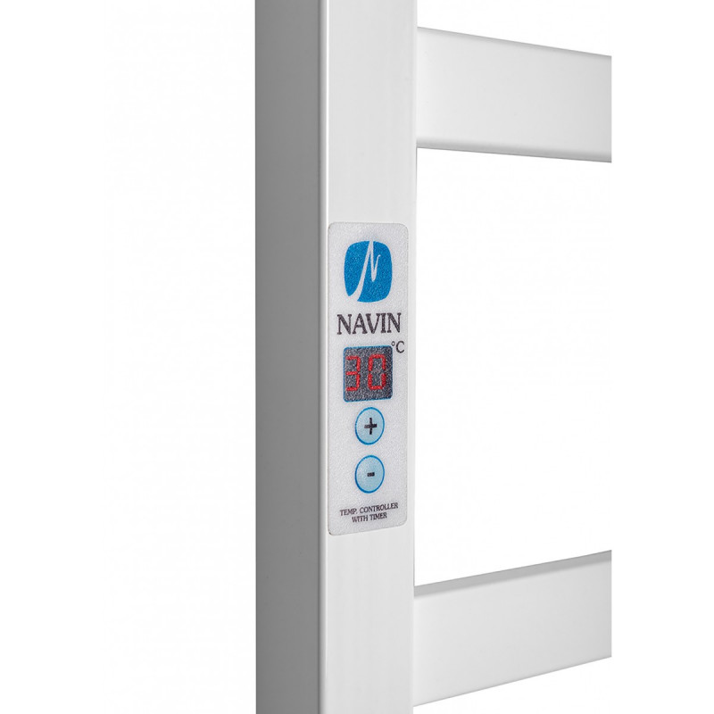 Полотенцесушитель Nordic 500х1200 Digital правый, белый бархат от украинского производителя NAVIN изготовлен из углеродной стали, которая отличается высоким качеством и прочностью. Толщина стенки перемычек полотенцесушителя составляет 1,5 мм, а боковых коллекторов 2 мм. Модель оснащена блоком управления полотенцесушителя Digital для регулирования его мощности и встренной функцией таймера.