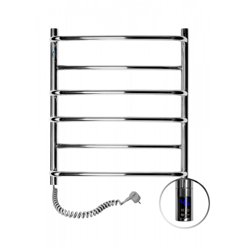 1) Электрический полотенцесушитель Navin Омега 530х600 левый сенсор с таймером нержавеющая сталь хром