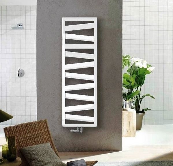 Дизайнерский полотенцесушитель Zehnder Kazeane выделяется своей неординарностью и экстравагантностью. Несмотря на ассиметричное диагональное расположение плоских труб, если присмотреться, вы увидите одну или две горизонтальные, в зависимости от высоты радиатора, для удобного развешивания полотенец.