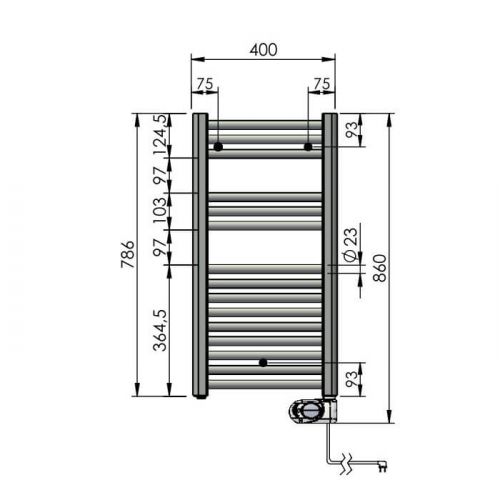 Электрический полотенцесушитель Zehnder Aura 786x400 мм 300 Вт со шнуром белый PBEZ-080-40-MQ-SC