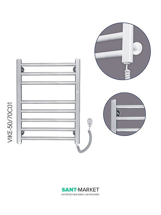Электрический полотенцесушитель Instal Projekt VIKING Slim 530х889х95 хром VIKSE-50/90С01