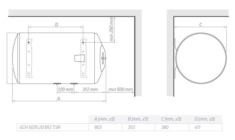 Tesy GCH 5035 20 В12 TSR — это недорогой, но достаточно качественный бойлер Теси, форма которого отличается от стандартных моделей тем, что имеет диаметр всего 35 см, поэтому если вы ограничены свободным местом, этот ультратонкий бойлер именно то решение, что вам нужно! За счет узкой формы этих бойлеров граница между нижним и верхним слоем воды значительно уменьшается, а значит, нагрев воды происходит быстрее. Бойлер устанавливается горизонтально, присоединительные патрубки расположены сбоку на корпусе, но при горизонтальном расположении бака они находятся снизу. Панель управления в этом случае будет находиться справа. Также предусмотрена система безопасности: обратный клапан, предохранитель и дублирующий термостат.