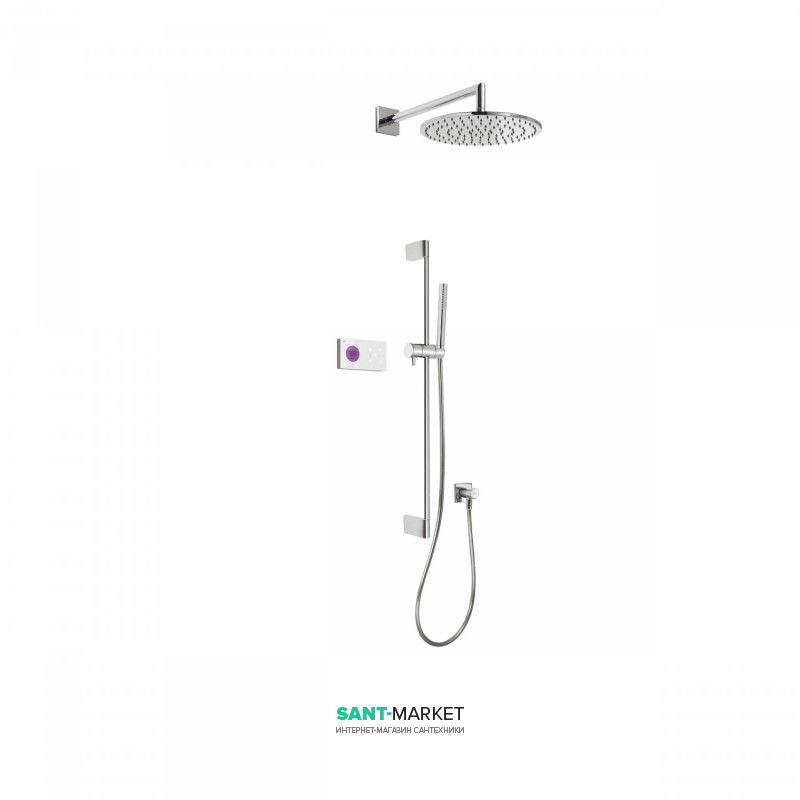 Электронная душевая система скрытого монтажа Tres Shower Technology с термостатом и штангой хром/белый 09286568