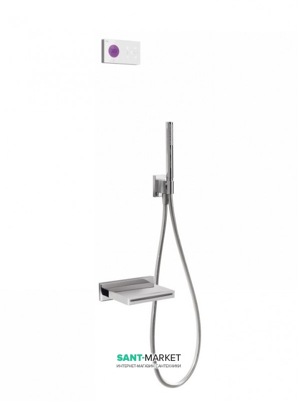 Электронная душевая система скрытого монтажа Tres Shower Technology с термостатом и каскадным изливом хром/белый 09286556