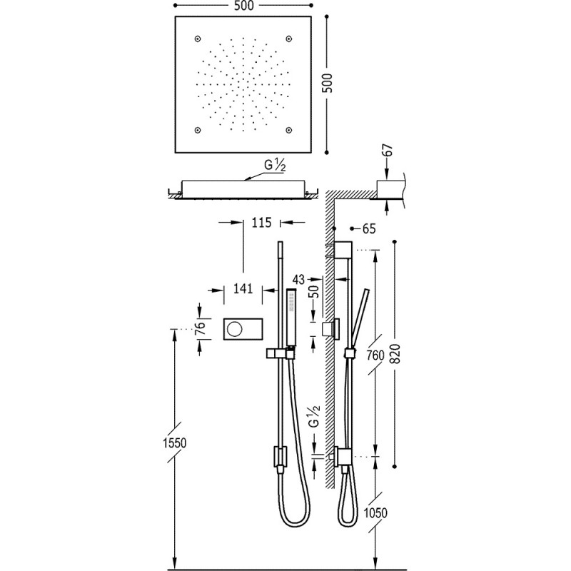 - Встраиваемый потолочный душ INOX 500x500 мм