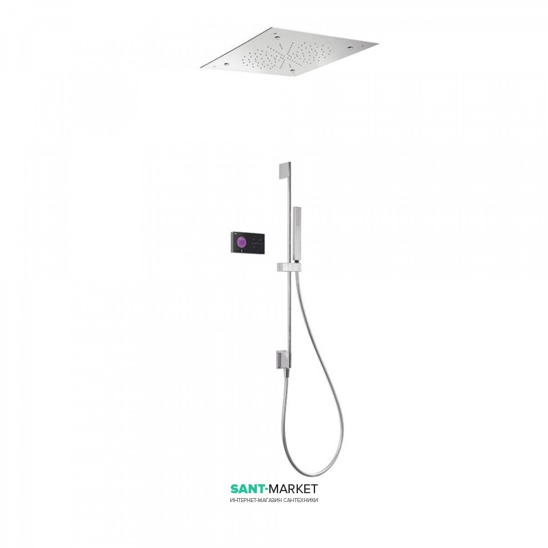 Электронная душевая система скрытого монтажа Tres Shower Technology с термостатом и штангой хром/черный