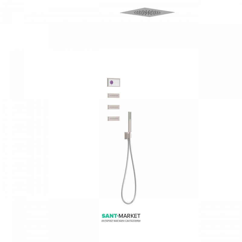 Электронная душевая система скрытого монтажа Tres Shower Technology с термостатом и боковыми форсунками сталь/белый