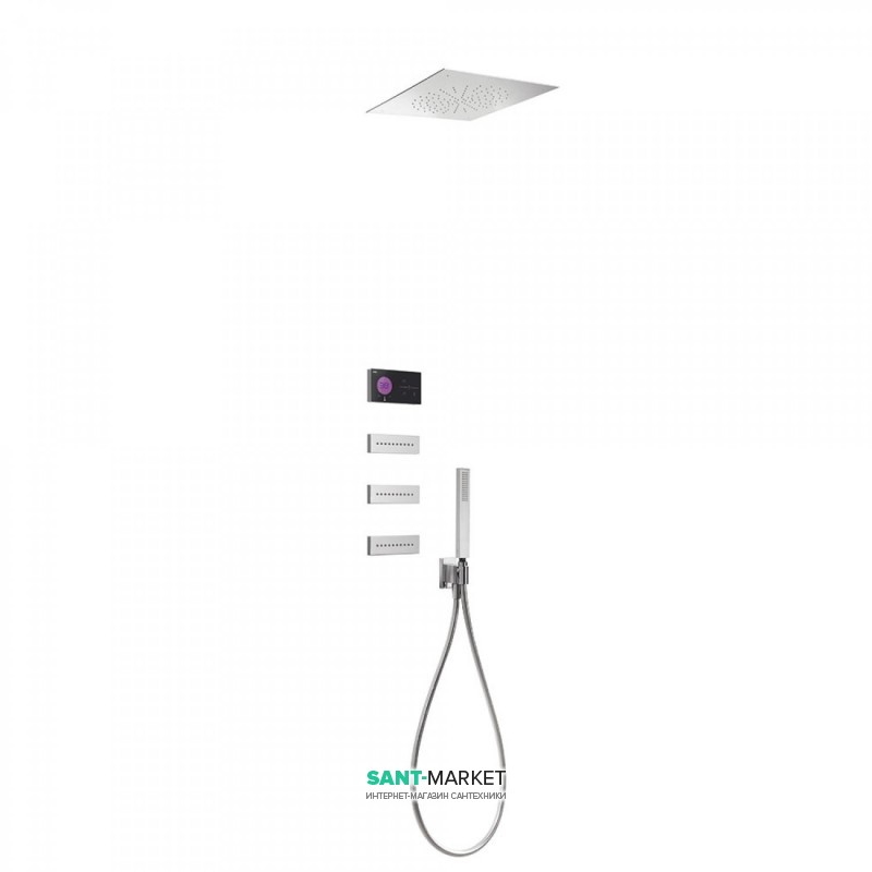 Электронная душевая система скрытого монтажа Tres Shower Technology с термостатом и боковыми форсунками хром/черный