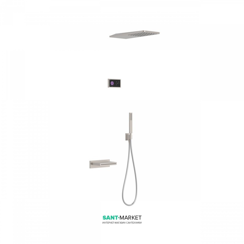 Электронная душевая система скрытого монтажа Tres Shower Technology с термостатом и каскадным изливом сталь/черный