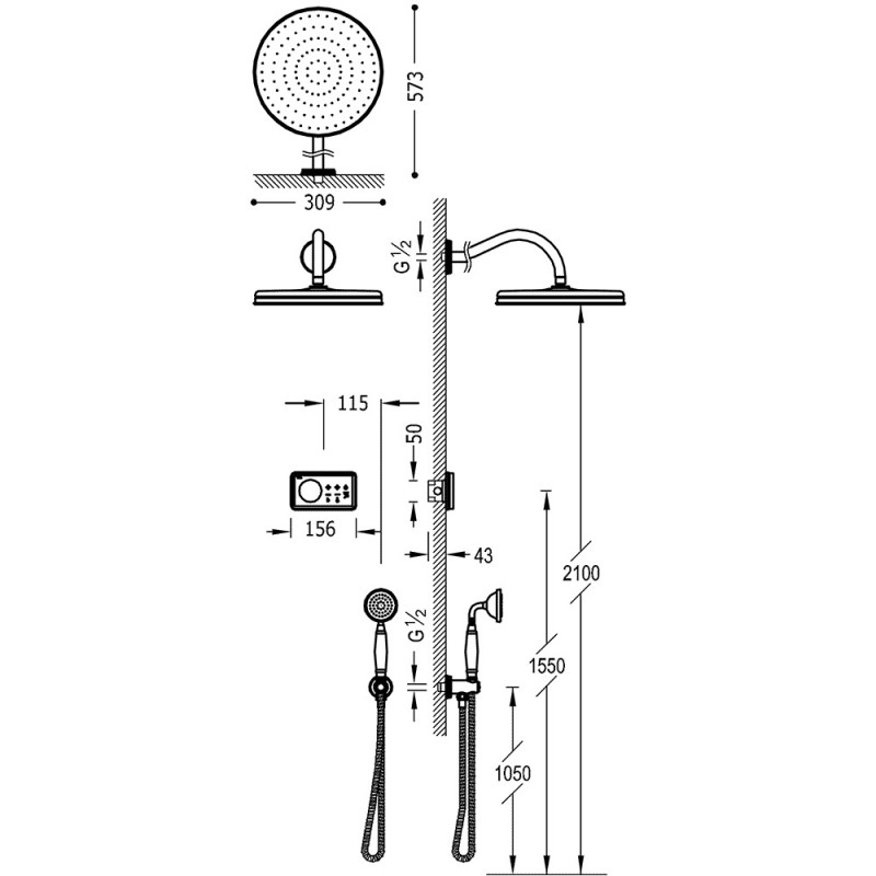 Электронная душевая система скрытого монтажа Tres Tres-Сlasic с термостатом сталь/белый