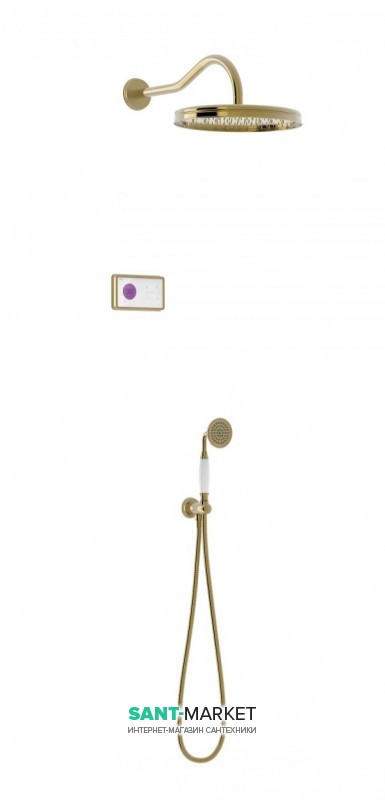 Электронная душевая система скрытого монтажа Tres Tres-Сlasic с термостатом состаренная латунь/белый