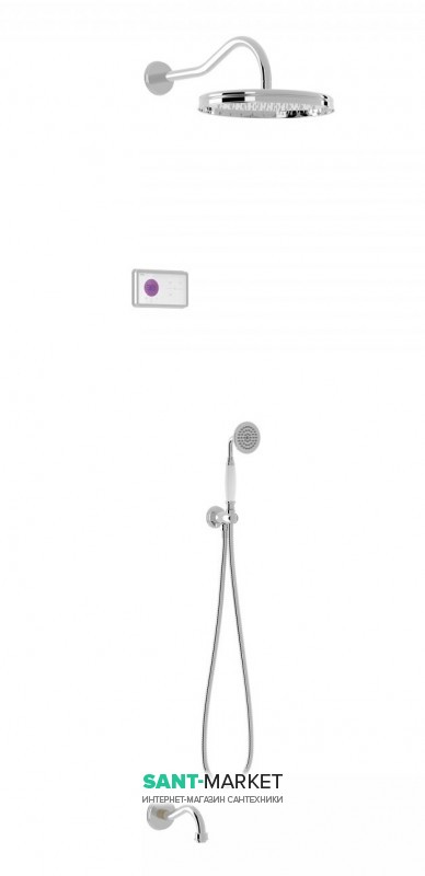Электронная душевая система скрытого монтажа Tres Tres-Сlasic с термостатом и изливом для ванны хром/белый