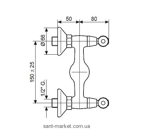 Смеситель для душа настенный двухрычажный Emmevi коллекция Deco Ceramic хром CR121002