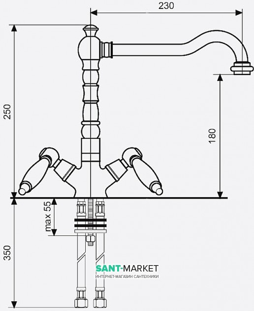 Кухонный смеситель торговой марки Emmevi (Италия) коллекции Deco арт. 121617 оснащён двумя рычагами смешивания и регулирования холодной – горячей воды. Смеситель Deco в стиле ретро – оптимальный вариант для кухни, им легко и удобно управлять, создаст комфорт в ежедневном пользовании, надёжный и функциональный в эксплуатации, он оборудован поворотным изливом Г – образной формы с большим радиусом действия, что позволяет его использовать для моек как с одной, так и двумя чашами, где моется разнообразная посуда. Корпус смесителя изготовлен из экологически чистого материала (латунь). Смеситель фирмы Emmevi является не только потребительским продуктом, но и привлекательным аксессуаром, который великолепно впишется в интерьер Вашей кухни.