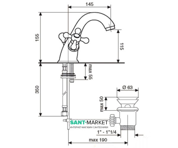 Смеситель для раковины двухвентильный с донным клапаном EMMEVI коллекция Deco Classic медь RA12013