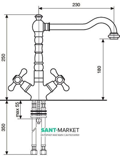 Смеситель для кухни Emmevi Deco Old двухвентильный ретростиль медь RA12617