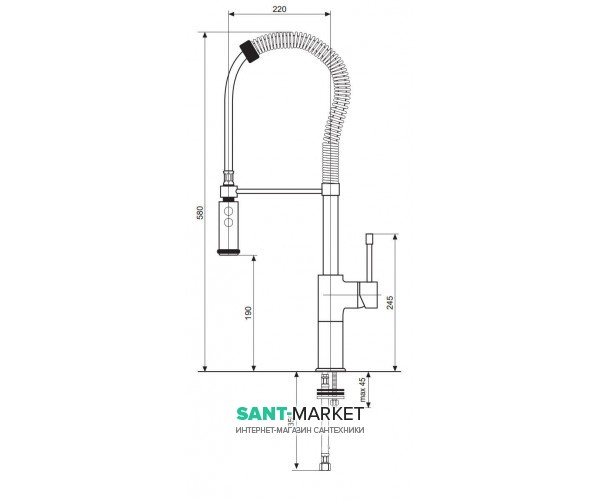Смеситель для кухни с выдвижной лейкой Emmevi Eden однорычажный на гибкой пружине CR71110