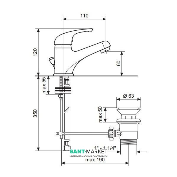 Смеситель для раковины однорычажный с донным клапаном EMMEVI коллекция Giglio сатин SC8003GTC