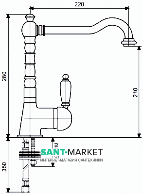 Смеситель для кухни Emmevi Laguna однорычажный ретростиль бежевый-хром P 50 40517A