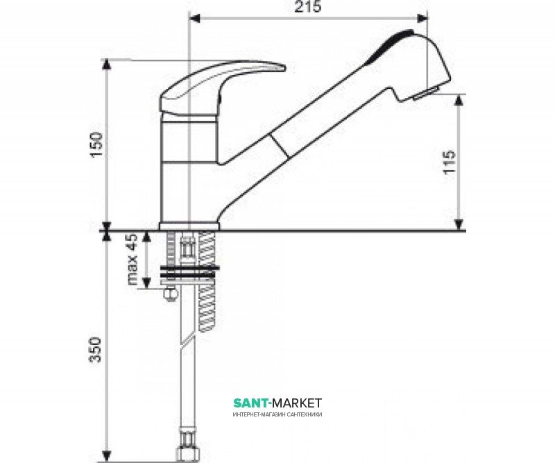Смеситель для кухни с выдвижной лейкой Emmevi Luxor однорычажный CR7065R