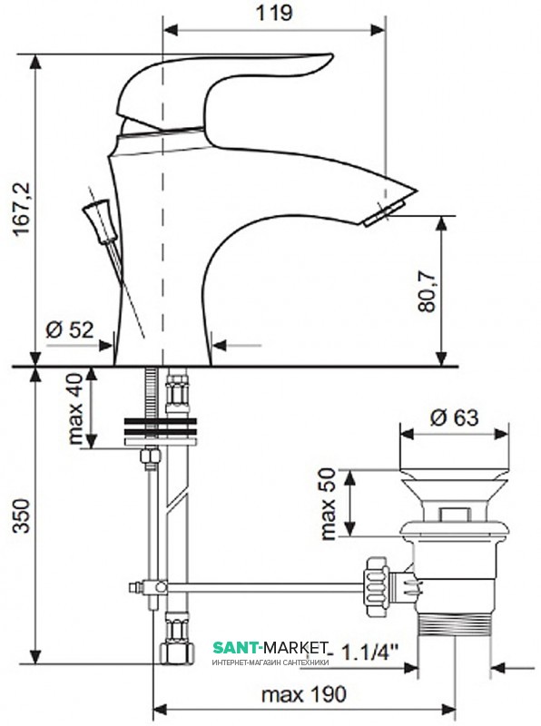 Высота смесителя: