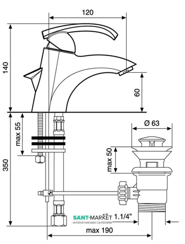 Смеситель для раковины однорычажный с донным клапаном EMMEVI коллекция Ramses хром CR72003