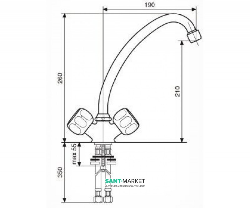 Смеситель для кухни Emmevi Sole двухвентилдьный ретростиль CR15207