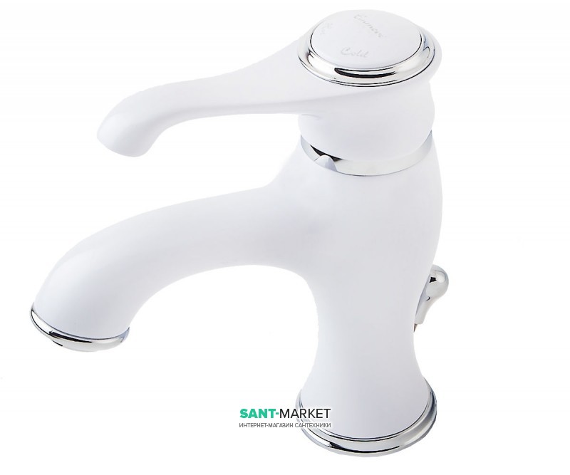 Смеситель для раковины однорычажный с донным клапаном EMMEVI коллекция Tiffany хром/белый BC6003