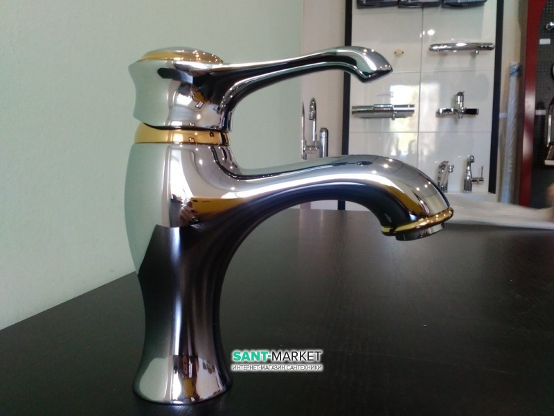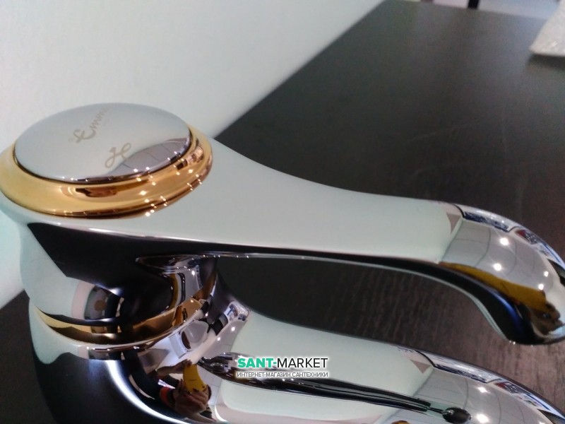 Смеситель для раковины однорычажный с донным клапаном EMMEVI коллекция Tiffany хром/золото CO6003
