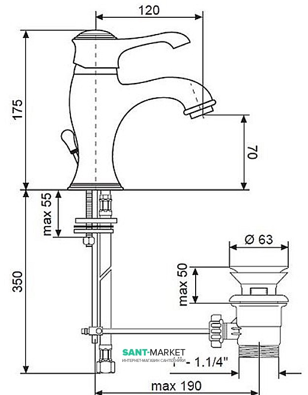 Высота смесителя: