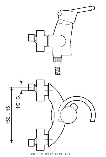 Смеситель для душа настенный однорычажный EMMEVI коллекция Twist сатин CS6602