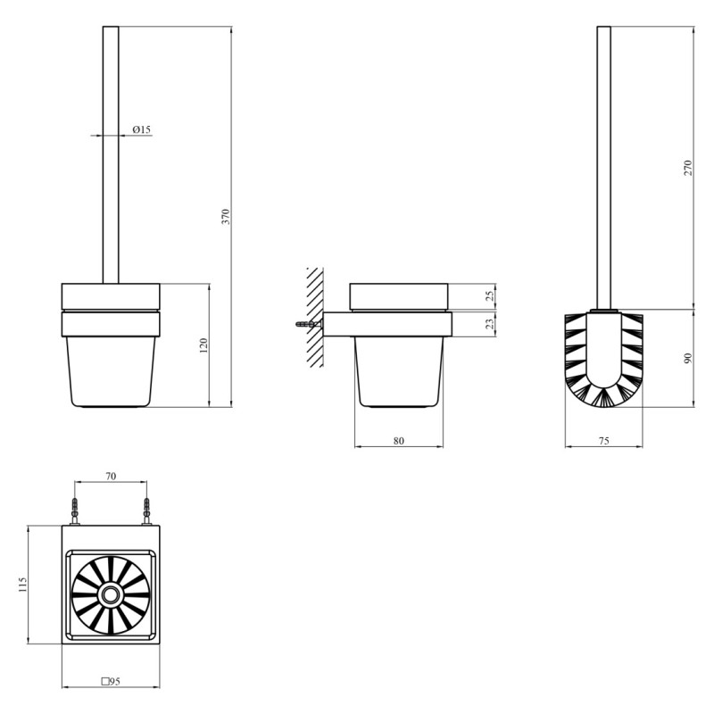 Ершик для унитаза Kroner KRP Edelstahl Kubus-SCH3910 с держателем белый/черный CV025649