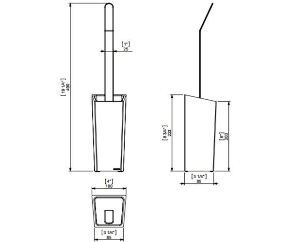 Рукоятка ёршика выполнена в аналогичном стиле – минимум лишних деталей и граней, прямоугольный дизайн и высококачественная хромировка латунного основания ручки. Основание (стойка) аксессуара имеет форму усечённого прямоугольного параллелепипеда с небольшим скосом верхней грани. Строгий, фактически идеальный дизайн, не имеющий аналогов среди сантехники других европейских производителей – лучшее решение для обустройства вашей ванной или туалета!