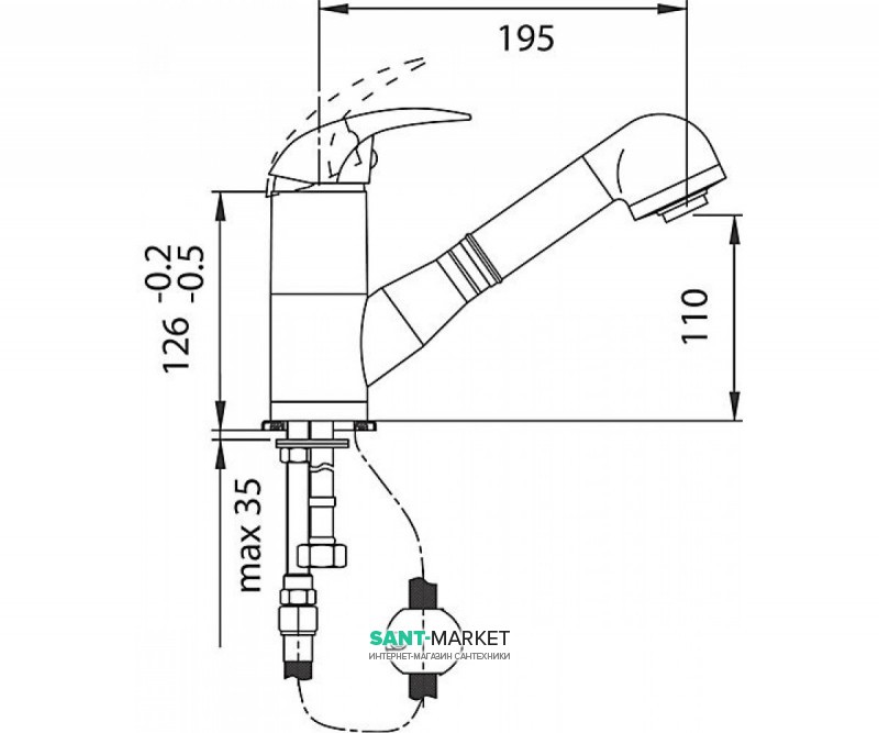 Смеситель для кухни с выдвижным душем Ferro Ancona однорычажный BAN8